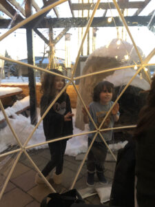 We had a really nice time and delicious food, and the kids took to running around the igloo. Several times I tried taking a picture and the shutter kept missing them. Too fast!