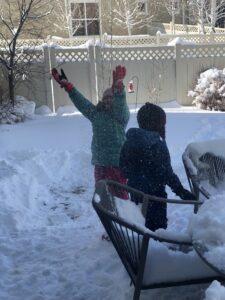 While all this was going on, the kids were having lots of fun playing outside in the snow. We got quite a bit and it was a good day for it.