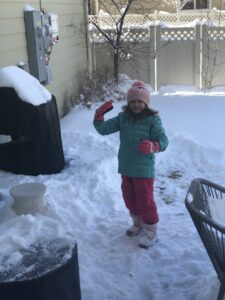 Fortunately, I was able to move the presentations and files I needed onto Erin’s computer, which I did right away in the morning. It has also snowed a wee bit the night before. Amelia had put a ruler in a glass out as a snow gauge the night before, and it was totally buried.