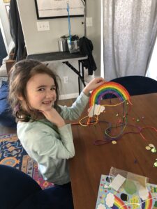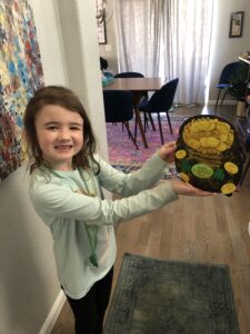 Erin had also signed us up for this fun little Leprachaun visit, that dropped off some fun St. Patrick’s Day arts and crafts for the kids to do. Amelia was all over that.