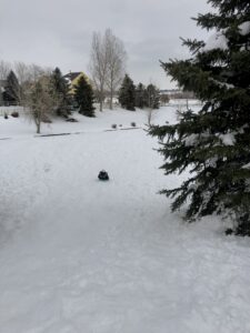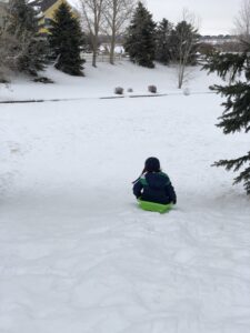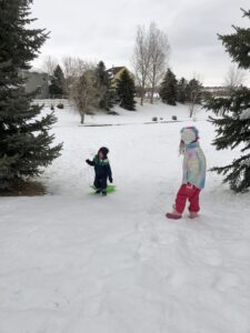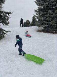 After that, we got to the hill and the kids did some excellent sledding. Even with a few wipeouts and close encounters with trees, it was so much fun.