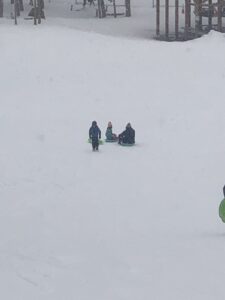 But it was awesome, and we all had so much fun. The snow was perfect for sledding, and even though we’d all be huffing and puffing by the time we got to the top of the hill, it was well worth it for that rush going down. All of us got in on the fun.