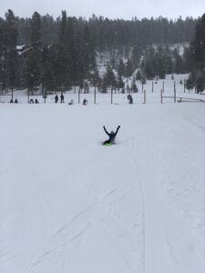 After that, we headed back to the hotel, got our snow pants on walked over to a really nice sledding hill in Breckinridge. It was quite a climb up…