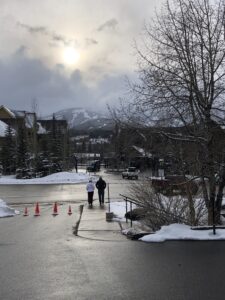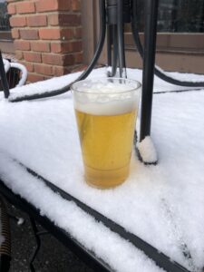 After that we headed back to the hotel to settle in for the night. I walked across the street to Breckenridge Brewery to order some carryout for dinner. While I was waiting for that, I enjoyed a nice pint outside. It was snowing and cold and not quite the same experience as when I did something similar a few days ago, but I still enjoyed the view and the brew.