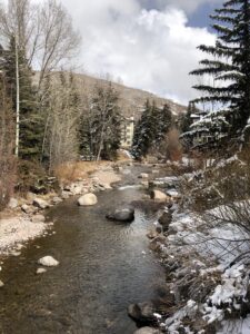 We pretty much took it easy in the morning, and the drove up to Vail a little later. I had managed to get us lunch reservations at our favorite restaurant there. Vail is about 40 minutes from Breckinridge, and it was a beautiful, snowy drive up. And we had an amazing lunch, followed by a stroll around town.