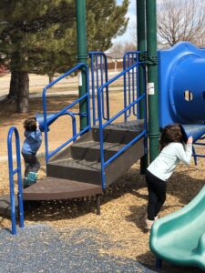 It was nice, and I was surprised that, as nice a day as it was, we had the place to ourselves. Afterward we walked back home, had a snack and got ready to go visit some friends for dinner. They are another couple with two kids that live in Denver and are in our small “bubble” at the moment. We hadn’t seen them in quite a while, and it was nice to hang out so the kids could play and we could have some grown up interaction with other human beings.