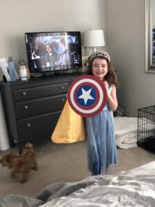 Amelia still had the day off, with school starting again for her on Tuesday. So she happily spent most of the day in her jammies and in various superhero, princess, and superhero princess costumes.
