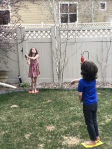 From there, I took the opportunity of lovely weather to grill a chicken and we had a really nice dinner in the backyard. After cleanup, Amelia asked if we could play a little baseball, so play we did.