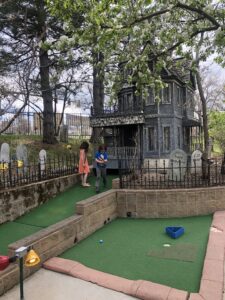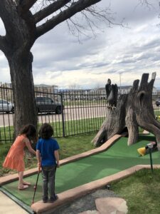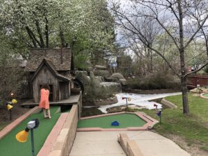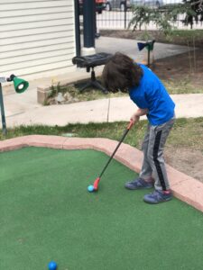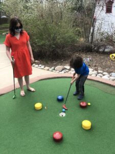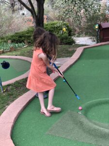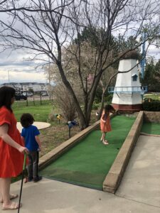 But the afternoon was where the real fun was, because we planned to go out and do some minature golfing. Erin recently passed a course not too far from home, and we thought it would be a good, outdoor, COVID-safe family activity for us to do. The weather was great, and we had so much fun on the course.