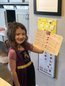 Anyway, Amelia was ready to face the day and started where she left off the night before…showing off multiplication tables. I’m usually not all that game for math at the breakfast table, but somehow she makes it OK. I particuarly like the pride with which she approaches these kinds of things.