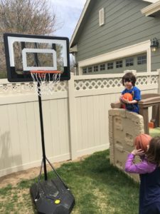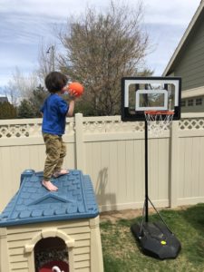 We were a little loose with the scoring, but had lots and lots of fun, even if I was the Washington Generals in this contest. That basketball hoop has been pure gold. I mean that figuratively, of course. Real gold would be a little ostentatious. We don’t want our suburban neighbors to think we’re putting on airs or anything.