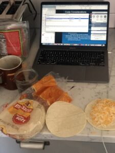 Later I had a to host a webinar, and while Erin was also on a call, I executed an elegant bit of multitasking. While the speaker was delivering his presentation, I listened in, fielded chat questions and made the kids some lunch at the same time. God bless the modern workplace!
