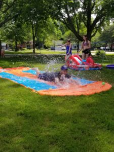 Given that we are spending so much time (wisely, I believe) being cautious, I do think it’s important for kids to also find time to throw caution to the wind and let themselves go. What better safe risk to take than on a Slip-N-Slide?