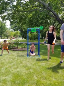 Happy to say, it’s still as fun at 47 as it was at 7. And then we made a game. Three throws at the dunk tank, and if you missed all three, you had to take a slide.
